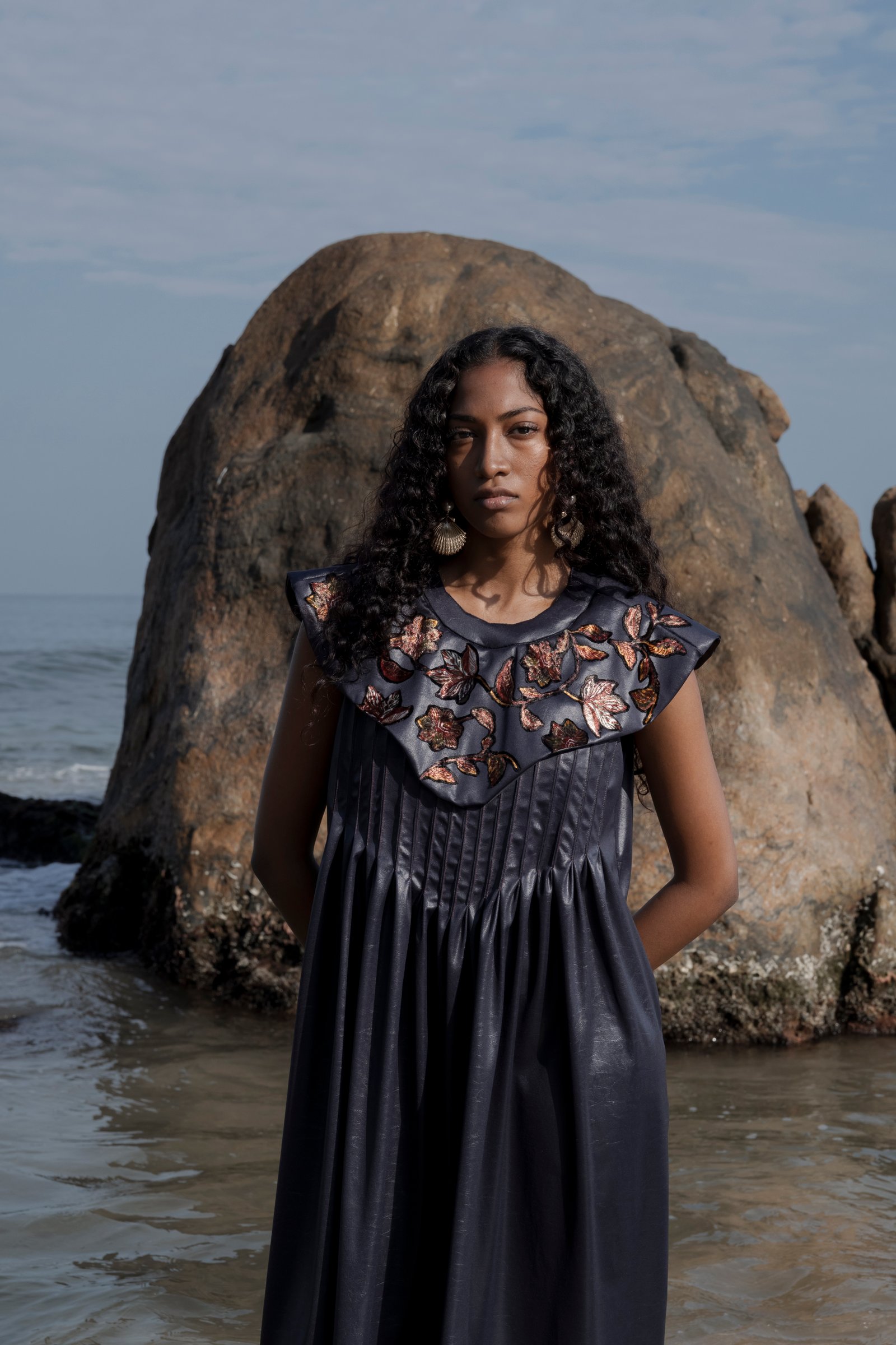 Sculptural yet effortless, The Sea-Bloom Dress captures the profound yet graceful movements of the sea as they gently unfold the blooms of the ocean. Softly manipulated pleats gracefully flow into the bottom of the dress to provide movement with elegance.