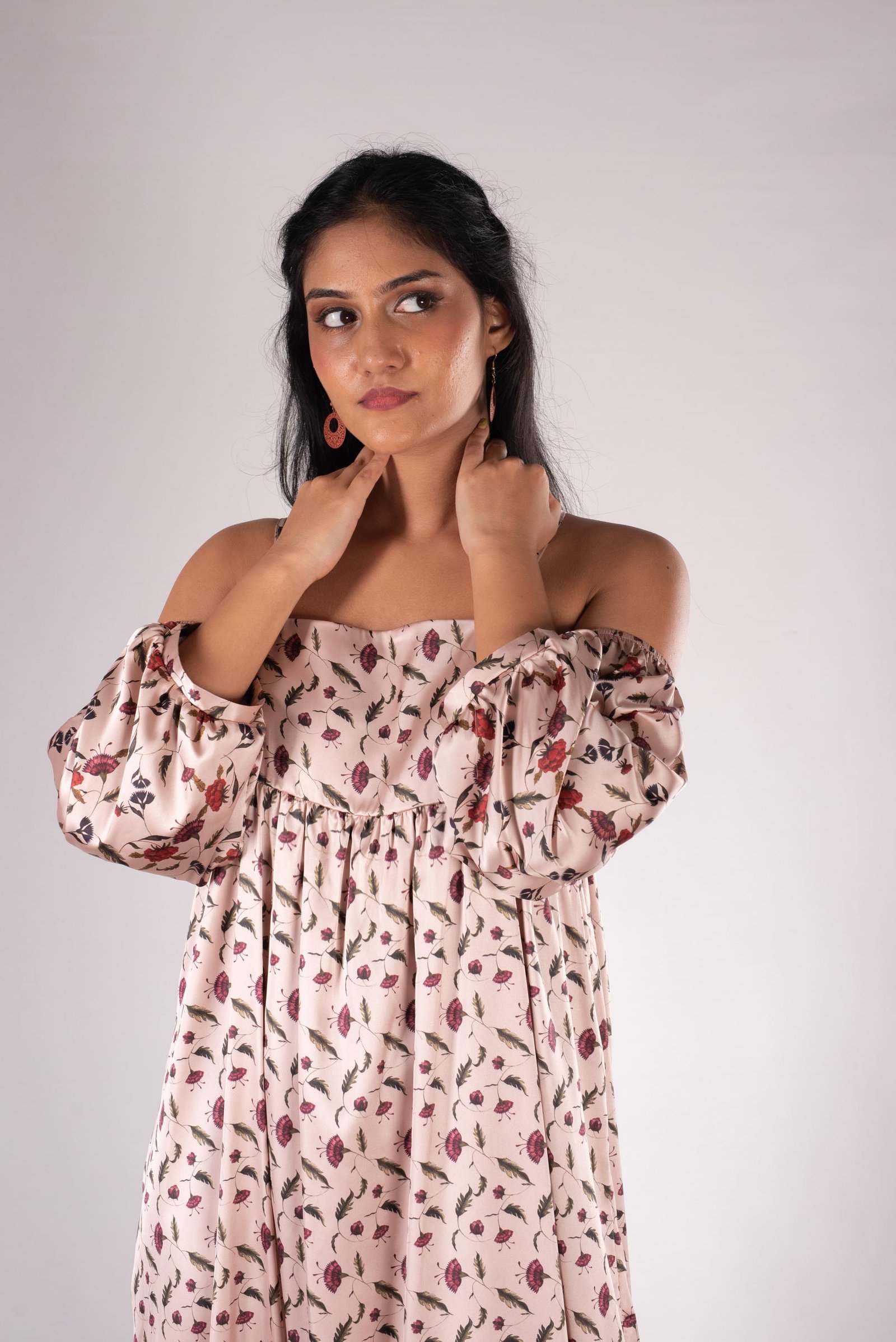- Free-flowing dress with long droopy sleeves